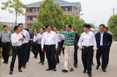 Liu Xuerong (third from right), secretary of the CPC Huanggang Municipal Committee, visited the company.