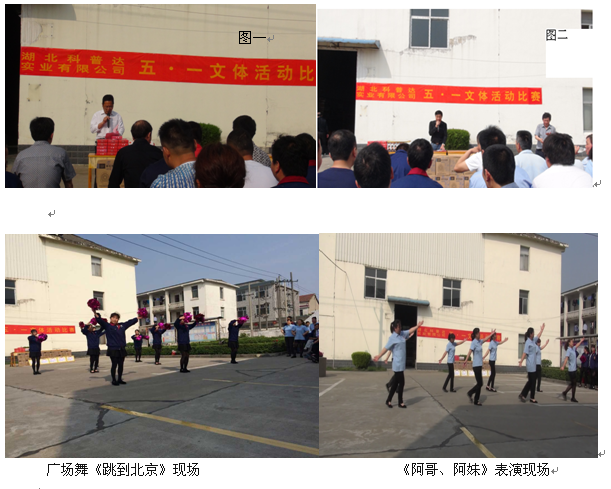 發布日期:2015/5/2 17:05:47????瀏覽次數:春風喜迎勞動節,舒展眉頭度五一。為豐富職工文化生活。4月30日上午,湖北科普達實業有限公司開展了慶“五一”廣場舞、拔河比賽文體活動。此次活動由工會、辦公室共同組織舉辦,公司全體員工積極參與,場面火爆,充分展現了公司員工團結向上,朝氣蓬勃的精神風貌。
