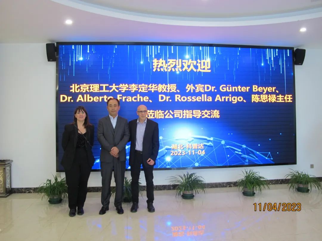 發布日期:2023/11/7 11:18:55????瀏覽次數:11月4日,著名電纜材料專家德國Günter Beyer博士、都靈理工大學Alberto Frache教授和Rossella Arrigo教授、北京理工大學國家阻燃材料工程技術研究中心主任助理李定華,和材料學院阻燃中心副主任陳思祿等專家一行蒞臨湖北科普達高分子材料有限公司,進行低煙無鹵等材料技術交流。本次交流旨在加強國際間低煙無鹵等材料的相關技術溝通,傳播新材料、新技術、新方案,促進無鹵料質量提升,推動行業健康發展。